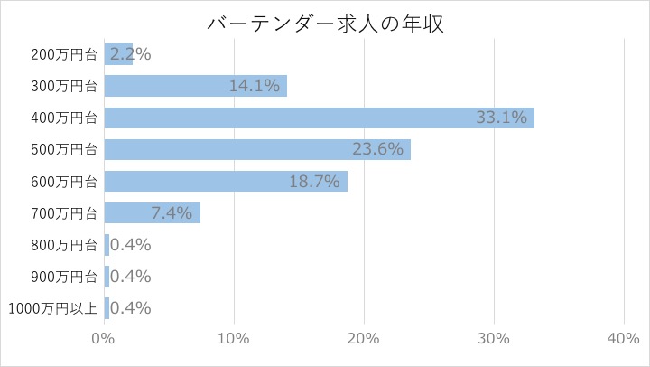 求人の給与情報から集計したバーテンダーの年収帯