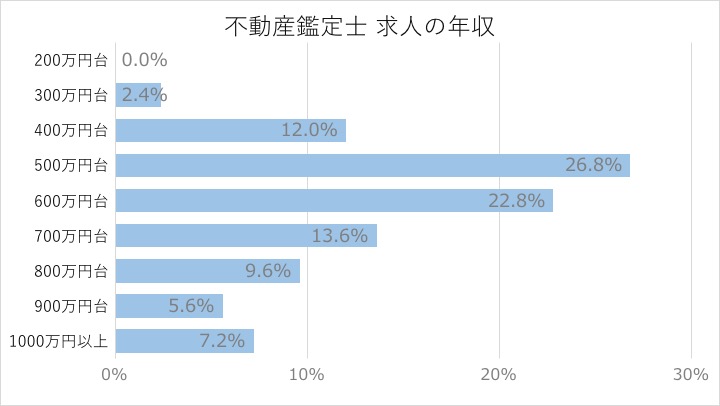 求人の給与情報から集計した不動産鑑定士の年収帯