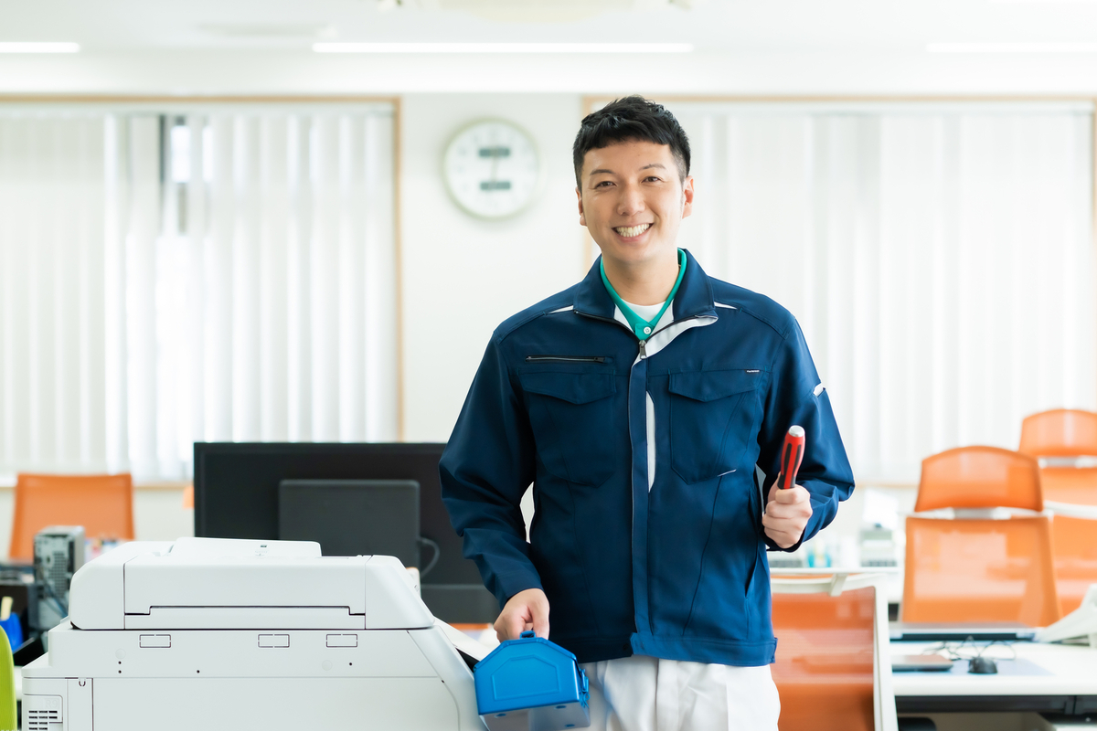 ただ機器を修理するだけではありません。例えば、新しいプリンターを購入したお客さまのもとへ訪問し、設置や設定を行いながら、使い方を丁寧に説明します。その際、お客さまの質問に分かりやすく答えることも重要な仕事の1つです。まさに、企業の「顔」として、お客さまと直接コミュニケーションを取り、製品の安心・安全を守っているといえるでしょう。
