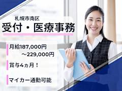 医療事務/札幌市南区/経験必須!月給187000円~229000円/賞与4ヵ月!昇給ありマイカー通勤可能/各種手当充実!