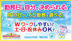仕事内容【ドラモリ/パート(社保有)医薬品登録販売者求人】未経験歓迎!充実の教育制度でサポート! 社会保険完備!「日曜祝は毎日休みたい!固定の曜日だけ勤務したい!」の希望にお応えし、新設しました♪ 資格と専門知識を生かして、医薬品(第2類、第3類)のカウンセ リング販売を担当していただきます。また、品出し、レジ、売場 づくりなどの店舗業務、商品補充や陳列、レジや売場での接客業 務もお願いします。久しぶりのお仕事でも大丈夫!しっかりフォ ローしていきますのでご安心ください。 【登録販売者資格手当あり!】 医薬品登録販売者資格とは市販医薬品(第2類、第3類)の説明・ 販売できる国家資格です。ドラモリ