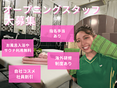 仕事内容施術業務を中心とした サロン運営に関わる業務全般を担当していただきます! 古い角質(垢などの老廃物)を専用ミトンで落とし、肌のターンオーバーを整えたり、 アロマオイルマッサージなどをしたりと…美容をサポートするお仕事です! アロマリンパトリートメント、スクラブ(あかすり)、フェイシャルを オールハンドの施術が中心となり、 他にもスカルプケアや腸内デトックス、海藻ジェルトリートメントなどを提供します。 ☆業界知識や技術は入社後からで大丈夫! 業界でもトップレベルの研修施設で、丁寧に教えて行きます! 講師陣も経験豊富な人達ばかりなのでご安心を! 実際に接客、施術に初めて取り組んだ先輩スタッフた