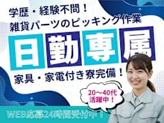 コツコツ作業/雑貨パーツの選別/かんたん作業/家賃無料/未経験可能/20代~40代男女活躍中