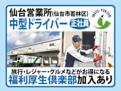 仕事内容<仕事内容> 週2~可!地場中心 中型トラックドライバー 車両は2Tまたは4T。 配送範囲は、県内・東北6県が中心。 (泊まり運行はありません) 荷物は機械・建材・什器など得意先によって異なります。 (一般貨物以外に、可能な場合は引越業務もあり) 勤務時間も配送ごとに異なります。 <給与> 日給9,600円~9,600円 <勤務時間> シフト制 週2~3日からOK <休日休暇> その他 シフト制(勤務日数は応相談) <勤務地> 宮城県仙台市若林区卸町四丁目5番地の21 仙台市営地下鉄東西線 卸町駅 <福利厚生> ◇ 雇用保険 ◇ 厚生年金 ◇ 労災保険 ◇ 健康保険 ※所定労働