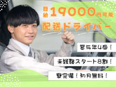 配送スタッフ/未経験から稼げる!固定ルートの配送ドライバー日給1.9万円だって可能!寮付き・賞与年4回の神待遇