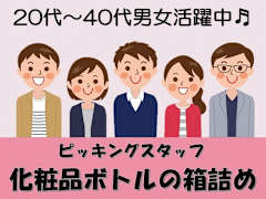 ピッキングスタッフ/化粧品ボトルの箱詰め/自分のペース/寮費0円/週払い可能/20代~40代男女活躍中