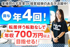仕事内容★未経験OK★年収800万円以上可★【20~30代中心に活躍中!】残業月17h以内! 【”異業種での接客経験者”も活躍中!】チーム目標制/訪問営業なし/当社マニュアル(N-BOOK)で知識獲得! 募集要項 【雇用形態】 正社員 【給与】 月給 267,000円~552,000円 ■中域型 (一般職~チーフの場合) 月給:267,000円~552,000円 ※その他社内規定に基づき手当あり ※みなし残業代47,000円/月28h含む ※28時間を超える残業代は追加で別途支給(1分単位) ●賞与年4回 ●昇給年1回 ※月間MVP店舗には報奨金あり。 ■中域型 年収:3,738,00