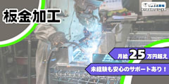 仕事内容未経験からスタートOK!月給250,000円可能、賞与年2回支給。資格取得制度もあり、手に職をつけて安定した働き方ができます。 〈オススメポイント〉 ● 月給25万円~手当あり ● 溶接の経験がある方も未経験の方も大歓迎! ● 松山市内から車で約20分、無料駐車場完備! 〈会社内容〉 昭和40年創業、配電盤・制御盤・監視盤などの設計・製造・販売を手がける摂陽明正株式会社。西日本を中心に、四国の配電盤業界でリーディングカンパニーとして高い実績を誇ります。昇進制度や技能資格取得支援制度も整備し、社員一人ひとりの成長を支える体制が充実しています。 〈仕事内容〉 板金・機械加工の製造工程を