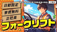未経験歓迎!/三重県四日市市/オープニング/正社員/月給/日月休み/電子回路基板製造のお仕事/フォークリフト業務/三重県四日市市