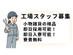 軽作業/小物雑貨の検品/倉庫内作業/即日就業可能/寮費無料/20代~40代男女活躍中