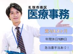 医療事務/札幌市南区/月給153700円~313500円/賞与3.2ヶ月/週2日お休みあり/年間休日121日
