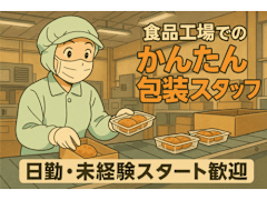 仕事内容急いで仕事を探している方、必見です。 ・即入寮・即入社、対応いたします。 モクモク作業が得意な方歓迎!工場内での梱包・箱詰めスタッフ 【仕事内容】 工場内で商品を梱包して箱に詰めるシンプル作業です!コツコツ進められるので、モクモク作業が好きな方にピッタリ◎ 具体的なお仕事 商品を箱に詰める 出荷用にしっかり梱包 箱詰め後に軽くチェックして完了! 【ここがポイント】 モクモク集中できるお仕事♪ 工場内は空調完備で年中快適! 未経験でもすぐにできる簡単な作業◎ 待遇 土日休み/残業月20時間以上/平日のみOK/長期休暇あり/GW/お盆休み/夏季休暇/年末年始休暇/社員登用制度あり/食事