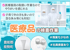 仕事内容ハンドクリーナーの製造作業/資格サポートあり/寮完備/初月から安定収入 ~未経験歓迎・大量募集~ あなたにお任せするのは、シンプルで簡単な作業内容。未経験でも安心の研修制度があり、手厚いサポート体制で安心してスタートできます。 様々な年代のスタッフで、活気あふれる職場です。困ったときはすぐに助け合える、フラットで働きやすい環境が魅力です。キャリアアップを目指す方に最適。定期的な研修で着実にスキルを高められる環境です。 しっかり休んで、しっかり働く。有給取得奨励日と柔軟な勤務体制で理想のワークライフバランスを実現しています。 【仕事内容】 <ハンドクリーナーの製造のお仕事> 家庭やオ