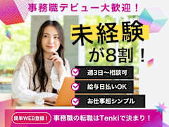 仕事内容アデコ株式会社 データ入力事務*未経験OK*定着率90%*リモートOK*研修制度充実 マイペースでOKだから初めてでも安心♪ お休み充実のアデコで自分らしく事務デビュー+。* 事務に転職したいけど、PCスキルがないから不安… そんなあなたの事務デビューにオススメ! これまで、多くの女性が事務デビューを叶えてきたアデコでは、研修制度が充実。 PCスキルもビジネスマナーも、 すべてイチから丁寧にレクチャーします。 さらに心強いのが、専任キャリアコーチの存在。 あなたの夢や目標に合わせて、 "なりたい自分"へのキャリアプランを 一緒に考え、実現までサポートします。 ワークライフバランス