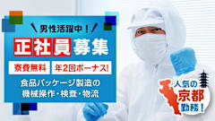 未経験歓迎!/京都府綴喜郡宇治田原町/正社員/月給制/寮費半額補助/未経験OK/食品パッケージの製造マシンオペレーター