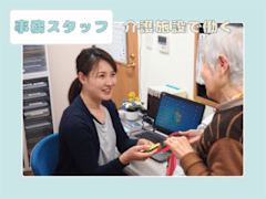 仕事内容介護施設での事務のお仕事!特別な資格や経験がなくても大丈夫♪ 福島飯坂【10】事務スタッフ(契約社員) 【仕事内容】事業所内での電話や来客対応、事務業務全般を お任せします。行事やイベントのご案内やホーム新聞の作成、 備品の発注、勤怠管理等のシステム入力などパソコン作業があり ます。介護の資格や経験は不問ですが、小規模な事業所のため、 ご利用者のサポートも行っていただきます。 【サポート体制充実!】 介護士員実務者研修、介護支援専門員、介護福祉士 などの資格取得のサポートあり! また、スタッフが個別でアクセスできるe‐ラーニングの システムで、お仕事に活用できる介護知識なども勉強 できる