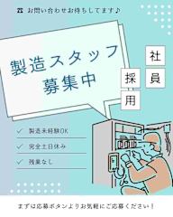 仕事内容【仕事内容】 自動車を運転する人の安全と安心のために必要不可欠な車載カメラの製造に関わるお仕事をお任せします! 【作業例】 ・部品製造装置の操作やメンテナンス作業 ・各部品を指示書通りに組立てる ・製品や部品を目視検査する 未経験から就業している方が多く、配属前に研修がございます! もくもくと作業したい方には非常におすすめです!