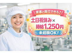 仕事内容“決まった手順で安心” 盛り付け中心の安定ワークで長く働ける。 【特徴・メリット】 未経験者歓迎 フリーター歓迎 経験者優遇 学歴不問 交通費支給 高収入・高時給 車・バイク通勤OK 寮・社宅あり 制服貸与 有資格者歓迎 平日のみOK 長期休暇あり 転勤なし 長期 社会保険完備 即日払いOK 健康保険 厚生年金保険 雇用保険 労災保険 受動喫煙対策: 屋内禁煙 【職種】 食品製造 【雇用形態】 正社員 【給与】 月給 235,000円〜302,000円 今手持ちがない方は日払いや週払いなどご相談ください。 ※上記は月収例の為配属先により異なります 【勤務時間】 ◎日勤専属・2交替