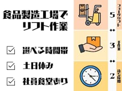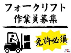 仕事内容【お仕事について】 ・お仕事内容 国内大手工場でのフォークリフトのお仕事です。 【仕事内容】 工場内作業をお願いします。 →カンタン3ステップで未経験でもすぐに慣れていただけるお仕事です。 ステップ1:所定の部品をチェック ステップ2:その部品を2本のツメがあるリフトでキャッチ ステップ3:決められた場所で運ぶ ほとんどの方が未経験スタートです。 ※異業種から転職した先輩社員が多数活躍中です! 【具体的には】 ・製品(部品)をフォークリフトで所定の場所まで運ぶだけ! ※工場内はいつも清潔で快適に働ける環境です。 【応募資格】 ・49歳以下の方(例外事由3号、長期勤続によるキャリア形成の
