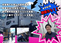仕事内容高日給・18000円は前払い可・週1からOK・単世帯がメイン・シフト制 車通勤OK・無料駐車場・残業代は1分単位・準中型免許歓迎 高日給(日給保証)トラック運転の経験活かせます!引越し作業を行うトラック運転手を募集!養生、搬入、搬出作業はチームで行います。2トンショートや2tロング車で、家財道具やダンボール箱を運搬していただきます。現場規模に応じて、1日2~3件程度をお任せします! 【個々を尊重し合う社風】 「みんなで幸せになる」という企業理念のもと、福利厚生と手当を充実。さらに新しい人事制度導入し、今まで以上に頑張りを給与に反映できる仕組みを作りました。長続きできる職場です。 新ユニフ