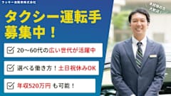 仕事内容お客様を安全に目的地まで送迎するタクシードライバー業務をお任せします。 地域の固定のお客様をはじめとした、配車仕事が売上の殆どを占めます。流しでの営業は殆どありませんので未経験の方も「お客様が見つけられなかったらどうしよう…」という心配は不要です。安定した仕事量が入ってきます。