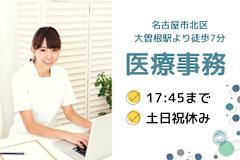 仕事内容【ここがオススメ!】 しゅふ・子育て終えた女性活躍中/時短OK 安心の研修体制・キャリアアップ支援充実◎ <職種名> 医療事務スタッフ <仕事内容> お客さまの受付・ご対応など医療事務業務をお願いします。 <勤務地> 名古屋市昭和区 <給与> 月給17万6060円~18万3760円 <勤務時間> (1)8:00~16:30 (2)8:30~17:00 ※週5日 <雇用形態> 正社員 介護・医療の業界大手「ニチイ学館」にて、 【医療事務スタッフ】を募集いたします! 医療事務として活躍している”社員の4割”近くがミドル層。 全国約7,000件の医療機関と提携しているので、 『勤務地