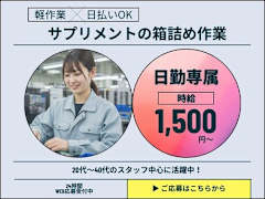 仕事内容【仕事内容】 物流センターでの検品・梱包のモクモク作業 倉庫内での検品・梱包作業をお願いします。 取扱いは、大小様々ですが難しい作業はありません! 検品・・キズや汚れ、へこみなどの状態の確認 梱包・・配送中の破損がないように、緩衝材などを巻き付け 未経験からでもスタートできる!カンタン作業! □未経験歓迎!学歴不問・経験不問! □残業少なめ・週休2日でプライベートも充実♪ □マイカー通勤OK 少しでも気になったらお気軽にご応募くださいませ♪ こちらのお仕事以外にも、様々なお仕事の取り扱いがあります! たとえば、おもちゃの製造やスマートフォン用アクセサリーの製造、化粧品の検品、日