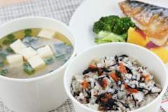 病院内での朝食盛付けスタッフ