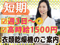 仕事内容【短期!10月下旬開始!】 週3日~OK!高時給1,500円! 短期で稼げるコールセンター! 【期間】 10/27~11月末までの短期 【おすすめポイント】 ・週3日~OK! 水曜固定休み!(その他シフト制) 家庭や私生活と両立できます! ・未経験OK! 事前研修が3日あるから知識ゼロでもOK! ・20代~40代活躍中! フリーターさん・主婦(夫)さんも活躍中! ・職場見学OK! 応募前に仕事風景や職場環境を確認できます! 見学してから応募するか決めてもOK! 【コールセンターのお仕事内容】 大手ガス会社のコールセンターにて 衣類乾燥機のご案内していただきます。 商品をご利用いた