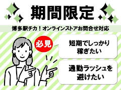 仕事内容【お仕事について】 ・お仕事内容 年末調整に関する業務 熊本駅チカ拠点! 短期スタッフを大募集★ 年末調整に関する、事務業務をお願いします♪ ①~③、どのチームがご希望か、お聞かせください( 【勤務期間・お仕事内容】 ①Aチーム(10/23~11/21) ・紙またはWEBからの申請対応:受付・内容確認・メッセージ作成・データ修正など ②Bチーム(10/27~11/21) ・紙またはWEBからの申請対応:受付・内容確認・メッセージ作成・データ修正など ③Cチーム(10/27~11/30) ・10/27~11/16 → 紙またはWEBからの申請対応:受付・内容確認・メッセージ作成・データ