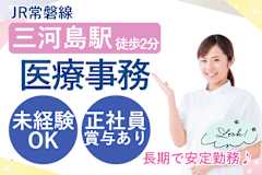 病院受付/三河島駅徒歩2分/正社員/賞与3ヶ月分/資格不問・経験者歓迎/安定の病院受付スタッフ募集